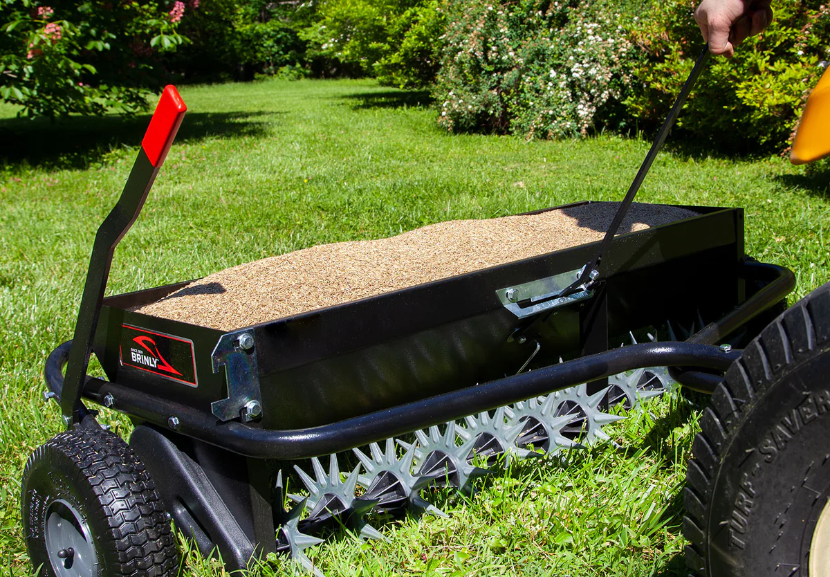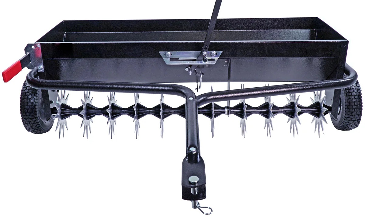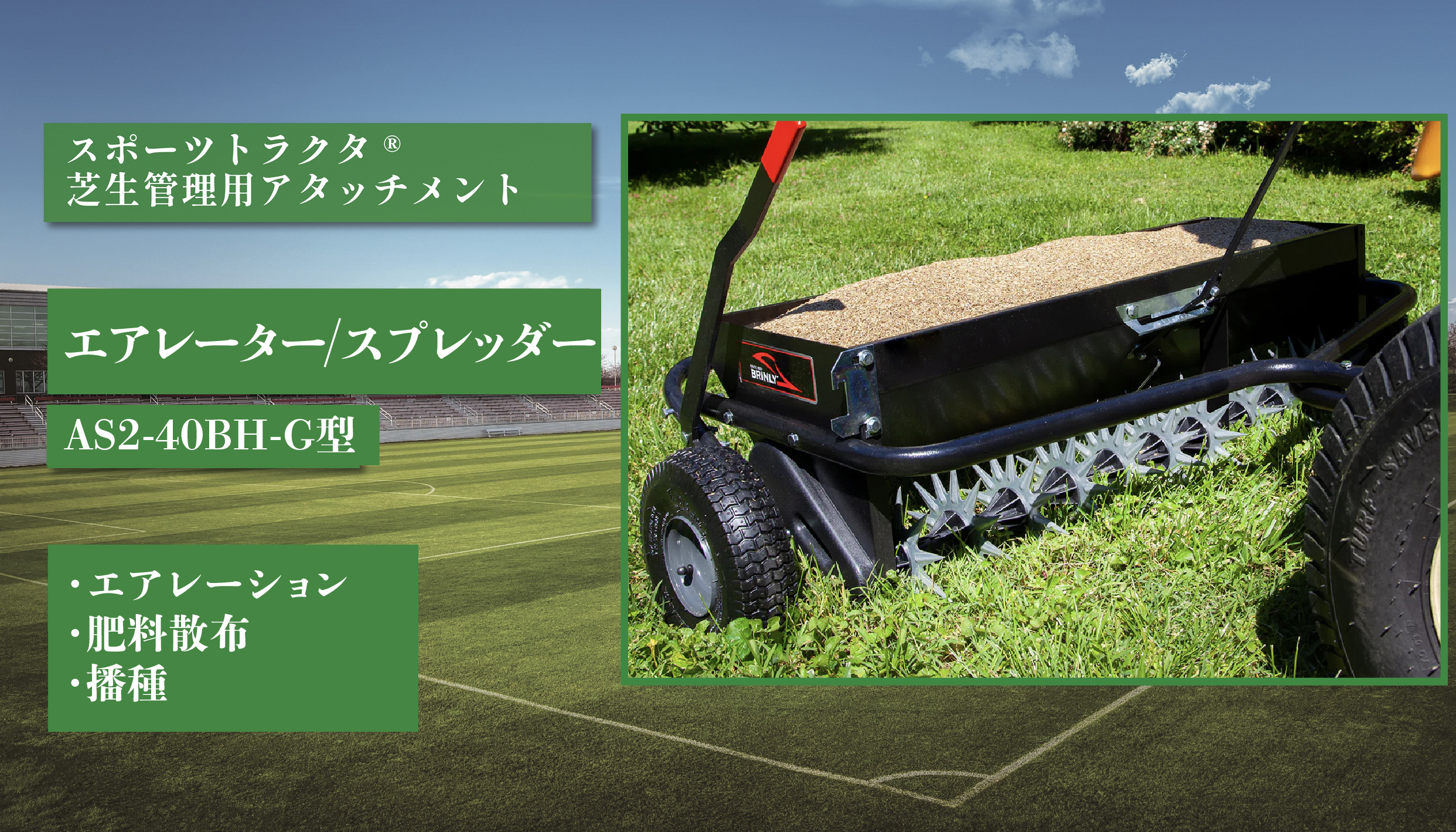 ■ エアレーションと同時に粒状材料の散布を行えるけん引コンビネーションエアレーター・スプレッダーです。