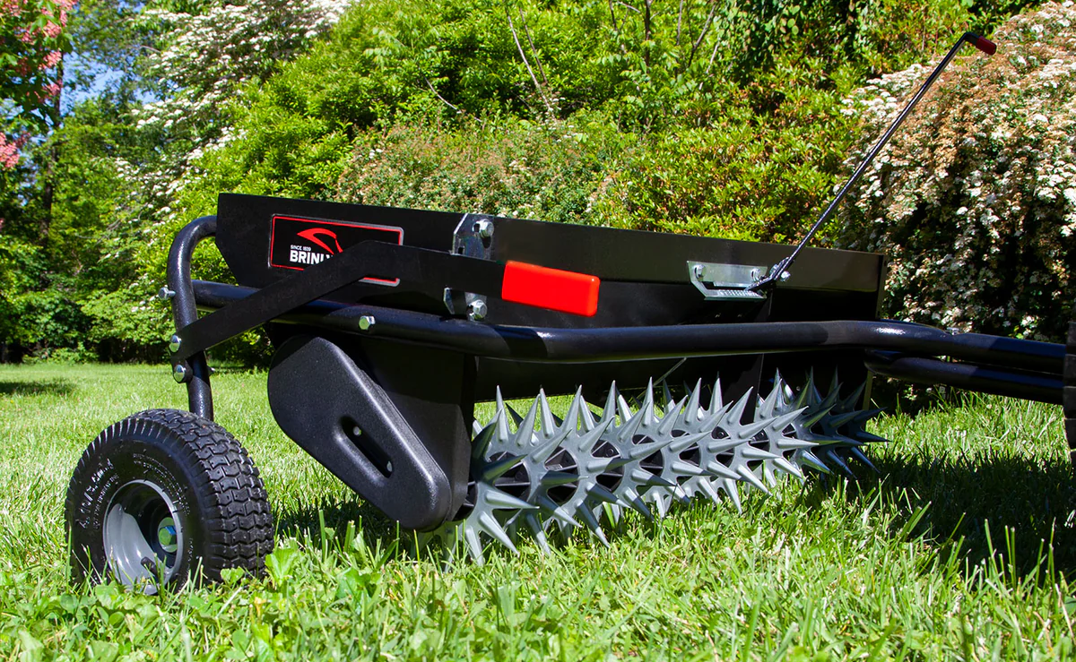 ■ 132本のタインが土壌に深さ2cm以上の深さで穴を開けていき、土壌の透水性、通気性を改善し、スプレッダーで同時に肥料、種子、砂などの粒状材料を散布できます。